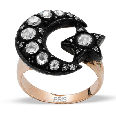 | ay yıldızlı Aris marka pırlanta bayan yüzük modeli |